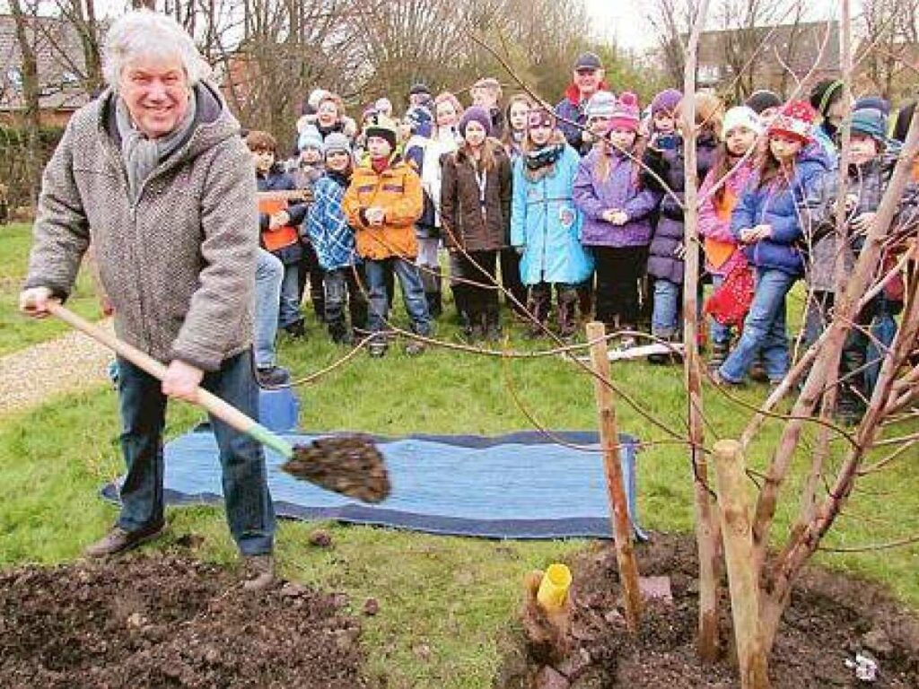 Am 6. Februar 2013: Kinderliedermacher Rolf Zuckowski pflanzt einen jungen Silberahorn.